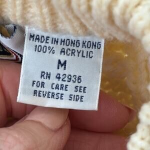Cream. Cable knit. Pullover. Long sleeve. 100% acrylic. Vintage size medium - see measurements as vintage sizing differs from modern sizing. Excellent used condition - no rips, tears, or stains. Flat lay measurements are approximate.
