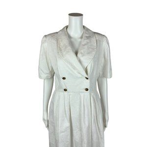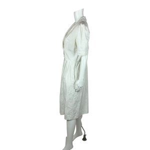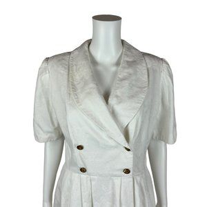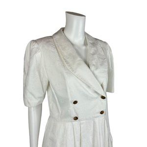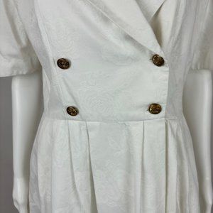 Vintage 80s Brocade Dress White Floral Collared Party Cocktail Petite Lanz