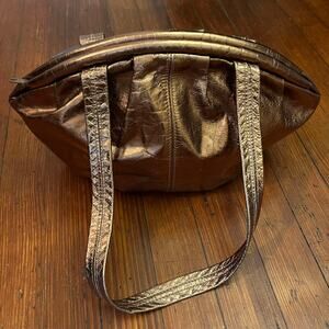 Vintage 80's Bronze Clamshell Shoulder Bag Purse