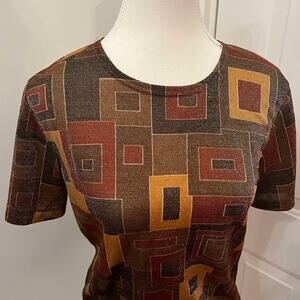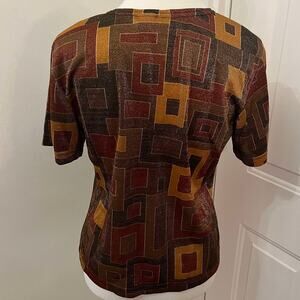 Vintage 80's Brown Geometric Square Metallic Short Sleeve Shirt Vue Point Size M