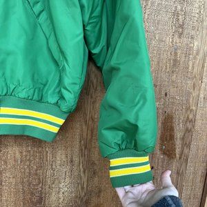 Vintage 80's Building Donnybrook Supply Fairbanks Alaska Green Satin Jacket Snap Pla-Jac Size 40-42 Medium