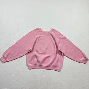 Adorable vintage 80s bunny and strawberry basket graphic crewneck in a soft pastel pink, featuring classic raglan sleeves, fuzzy fleece lining, and that signature late-80s hand-painted style. Made in USA on a Maximum Sweats by Tultex tag, with a relaxed oversized fit and cozy cotton-blend feel. Approximate measurements & condition/call-outs (if any) shown in pics.