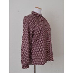 Vintage 80s Burgundy Ditsy Floral Polyester Button up Blouse by Panther