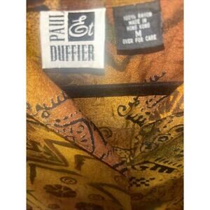 Vintage 80’s Button Down Shirt Sz Med Paul Et Duffier Abstract Print Brown Retro