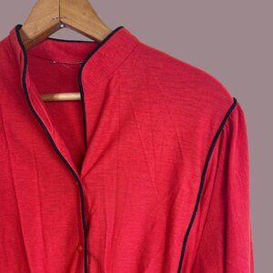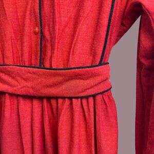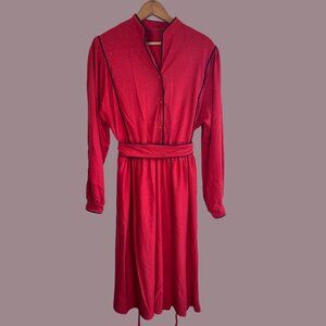 Vintage 80s Button Front Mock Collar Elastic Waist (With fabric Belt) Midi Dress