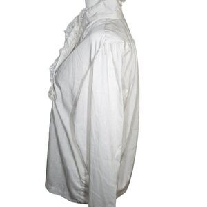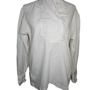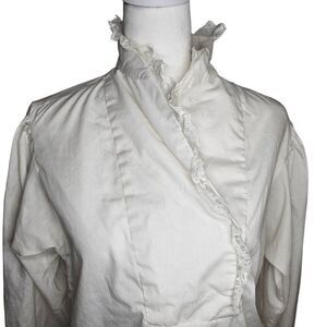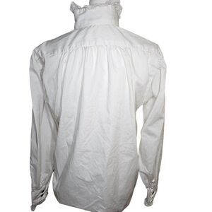 Vintage 80s Button Up Blouse Womens S White Ruffle Front Romantic Modest Lace