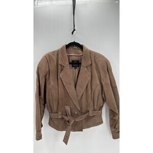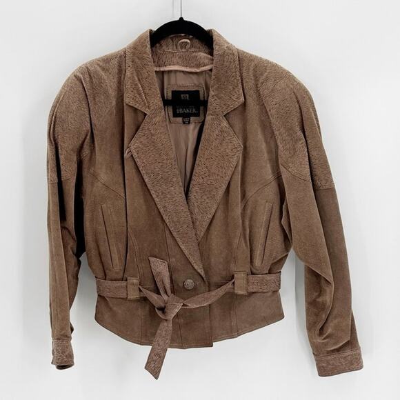 Vintage 80s Byrnes & Baker Belted Leather suede Jacket Size Medium western NFR beige