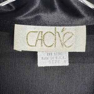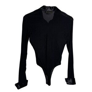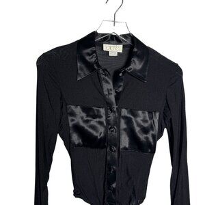 Vintage 80's CACHE sheer bodysuit satin trim black size 4 Long Sleeve Made in US