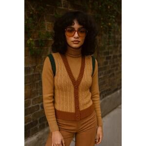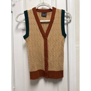 Vintage 80s Cable Knit MultiColor V Neck Fisherman Style Sweater Vest Size Small