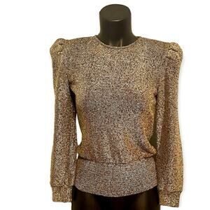 Vintage 80s Cache Top Size S Gold Metallic Shimmer Long Sleeve