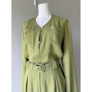 features zip front, belted, chest pockets, front pockets, shoulder pads