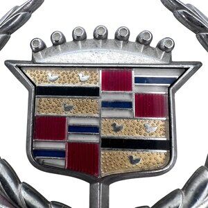 A timeless piece of automotive history, this Cadillac hood ornament showcases the classic wreath and crest design. Crafted with intricate detail, it reflects the elegance and style of mid-20th century vehicles. A cherished addition for collectors or restoration enthusiasts.