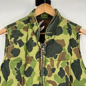 Vintage 80s Camo Vest Zerowear by Hyman Quilted Green Zip Insulated Mens Large