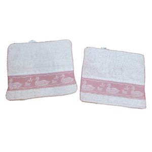 Vintage 80s Cannon Mill Pond Pink Duck Towel Set 4 Pcs USA 2 Towels Wash Cloths