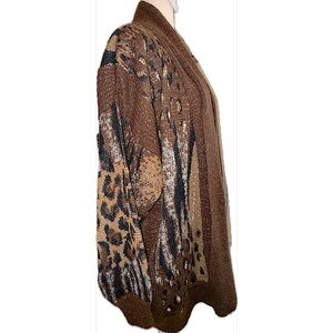 Vintage 80s Cardigan Sweater Multi Animal Print Metallic Leopard Pockets L