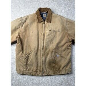 Vintage 80s Carhartt Detroit Jacket Adult XL Tan Blanket Lined Canvas 100 Years