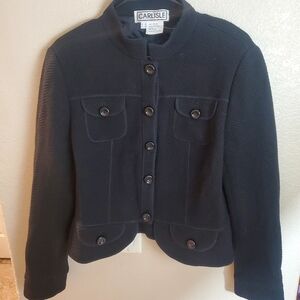 Vintage 1980s Carlisle Black Blazer. 100% wool. Scalloped hem. No flaws.