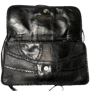 Vintage 80s Carlos Falchi Shoulderbag Black Lizard & Snakeskin Print Leather EUC
