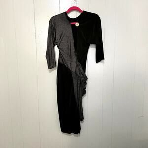 Vintage 80s Casadei Black Gold Texture Draped V-back Evening Midi Dress 6