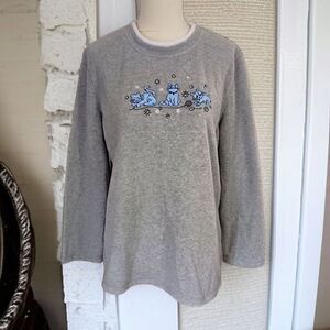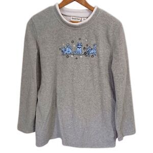 Vintage 80s Cat Lady Fleece Top M Sweatshirt Pullover Granny Kittens Playing 90s