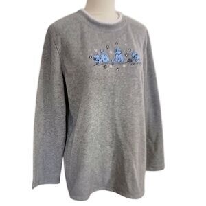 Vintage 80s Cat Lady Fleece Top M Sweatshirt Pullover Granny Kittens Playing 90s. Condition is pre-owned and vintage 80s to 90s. Embroidered quilted cat theme playing with yarn balls. Beaded and glittery. Fleece material of polyester. PLEASE SEE MEASUREMENTS!! No rips, tears, holes or discolorations.