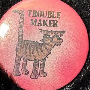 A unique collection of retro pinback buttons featuring playful cat designs from the 1980s.