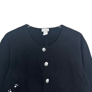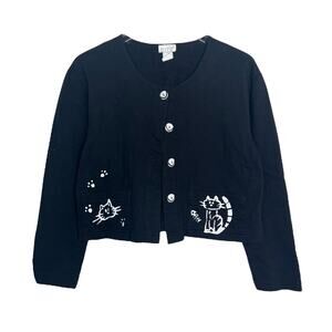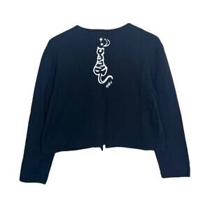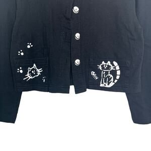Vintage 80s Cats Cartoon Button Up Long Sleeve Cropped Layering Top Black Small