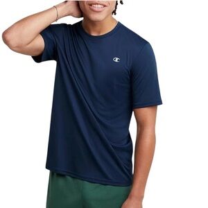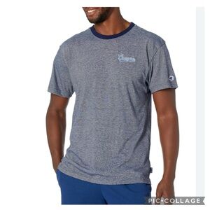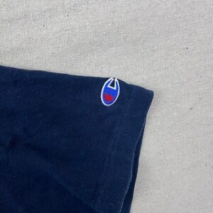 Champion Chicago Bears t shirt in navy blue. Features the iconic Chicago Bears logo with team name arched above and below. The shirt includes the Champion logo on the left sleeve.