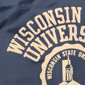 Rep Wisconsin State University with this vintage 80s Champion coach jacket--baggy fit, navy-blue, and classic college style!