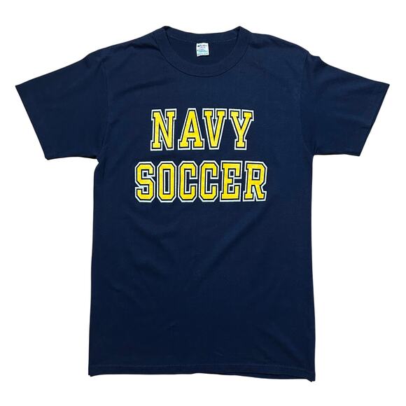 Vintage 80s Champion Navy Soccer T-Shirt Made in USA Large Naval Academy