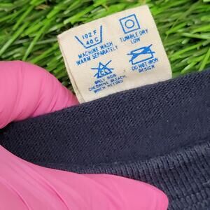 Vintage 80s Champion shirt in faded navy blue, teen size M/L (16x27). Classic athletic wear with a worn-in look. Rare find! Shop now!