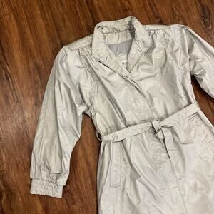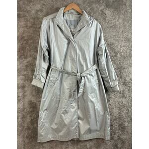 Vintage 80s Changing Scene Silver Nylon Raincoat Belted Trench Coat 12 L Large