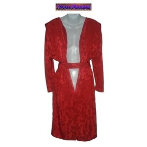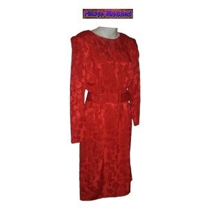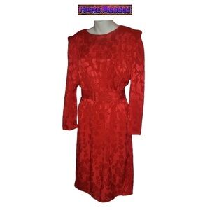 Vintage 80's Charlee Allison For Eljay Red Satin Floral Dynasty Dress Belt Retro