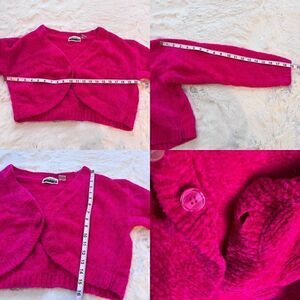 Vintage 80’s Chenille Cropped Knit Cardigan Sweater Hot Pink Barbiecore size M