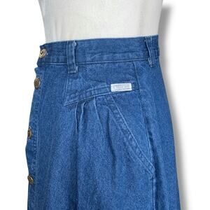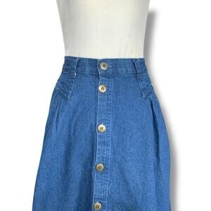 Vintage 80s Cherokee Denim Button Front Midi Skirt Cotton Prairie Western Jean