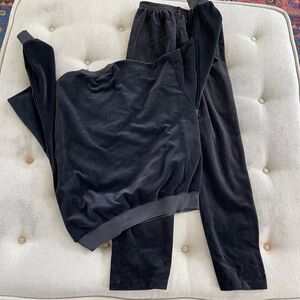 Vintage 80s Cherry Hill Abstract Velour Track Suit Sweatshirt Pants Set Black Bl