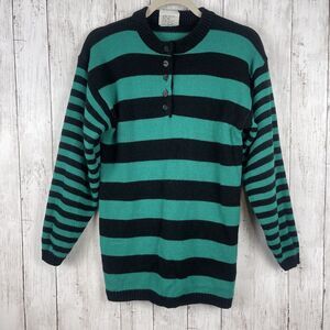 Vintage 80s Cherry Stix Limited CSL Sweater Women Small Stripe Green Black Retro