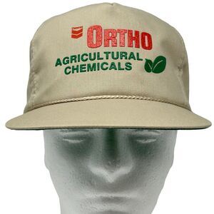 Vintage 80s Chevron Ortho Agricultural Chemicals Hat Cap K-Brand USA Made Beige