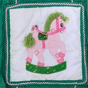 Vintage 80’s Children’s Green Quilted Book Bag With Rocking Horse