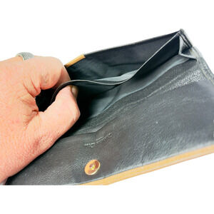 Vintage 80s Christian Dior Black Tan Leather Clutch Wallet CD Logo Envelope Bag
