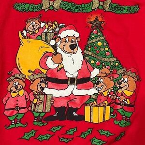 Vintage 80s Christmas Bear Family Xmas Santa Claus Ugly Sweater Party Sweatshirt