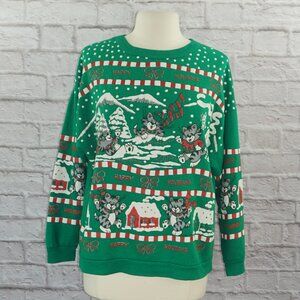 Vintage 80s Christmas Holiday Cats Pullover Sweatshirt