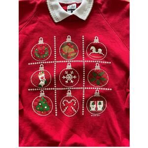 Vintage Christmas Ornament Sweatshirt w/ Collar size L