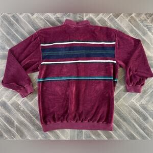 Vintage 80’s Christopher Hayes Velour Striped Maroon Polo Shirt | XL