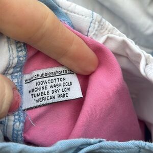 These vintage 80's blue & pink multicolor Chubbies shorts are a must-have for any recreational activity. Designed with an elastic waist, these shorts are comfortable and perfect for men who wear size S. They are made of cotton, machine washable, and perfect for those who love colorblock patterns and 80s themes. These shorts are pre-owned but are in great condition , light wash wear one small area with light discoloration (pictured). The brand Chubbies is known for its high-quality swimwear, and these shorts are no exception.