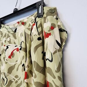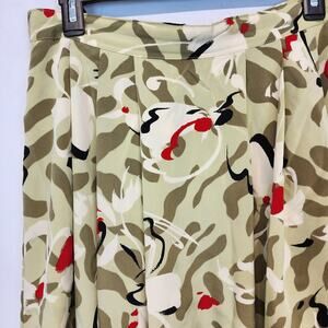 Vintage 80s City Girl Pleated Midi Skirt Size 13 28" Green Abstract Flowy Retro