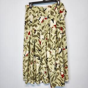 Vintage 80s City Girl Pleated Midi Skirt Size 13/14 28" Green Abstract Flowy Retro