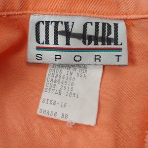 Vintage 80s City Girl Sport Womens 16 Jacket Cropped Canvas Embroidered Peach