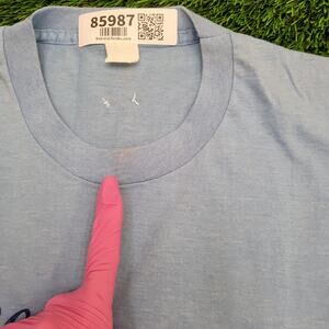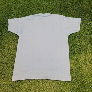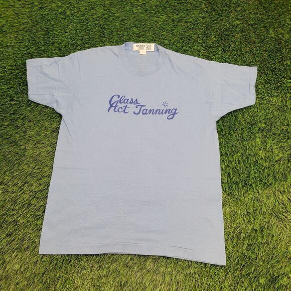 Step back in time with this vintage 80s Class Act Tanning shirt. Soft blue single-stitch tee in medium size. Shop now!