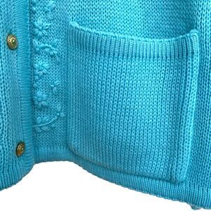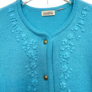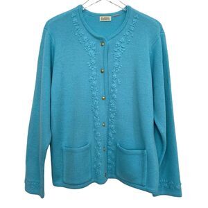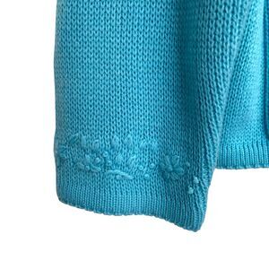 Vintage 80s Classic Elements Blue Flower Embroidery Cardigan Sweater Size L